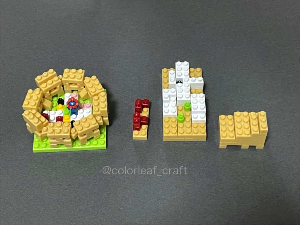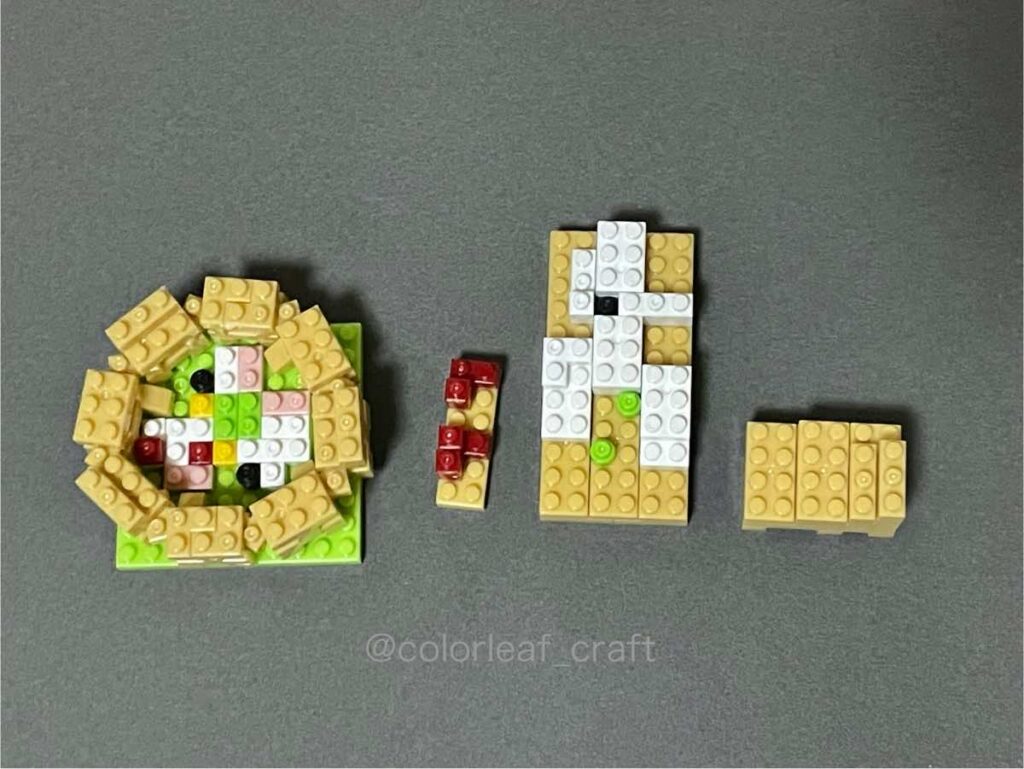 ウサギ1袋分で作ったので足りないパーツがありました。それっぽく見えるように組み合わせている感じです。これが正解とかは、ありません。